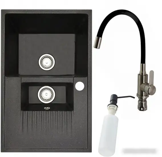 | Комплектация | смеситель (1 шт.), кухонная мойка (1 шт.), дозатор для жидкого мыла (1 шт.) |