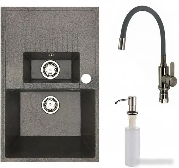 | Комплектация | смеситель (1 шт.), кухонная мойка (1 шт.), дозатор для жидкого мыла (1 шт.) |