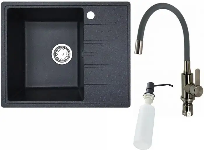Кухонная мойка БелЭворс Mila L + смеситель W74004-2 + дозатор L405F (черный)