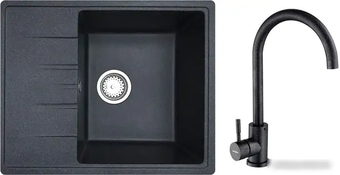 Кухонная мойка БелЭворс Mila R + смеситель W4998-3-22 (черный)