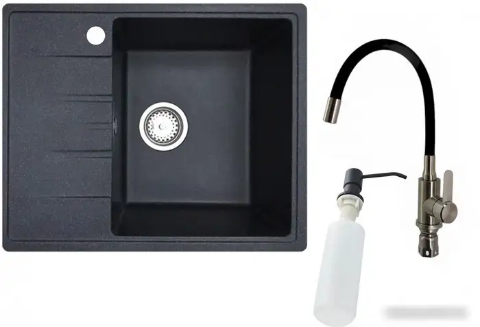 Кухонная мойка БелЭворс Mila R + смеситель W74004-2 + дозатор L405F (черный)