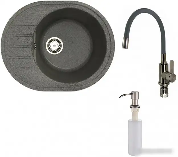 Кухонная мойка БелЭворс New Lux R + смеситель W74004-9 + дозатор L405-1 (серый/сатин)