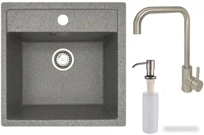 Кухонная мойка БелЭворс Rio + смеситель W4998-4 + дозатор L405-1 (серый/сатин)