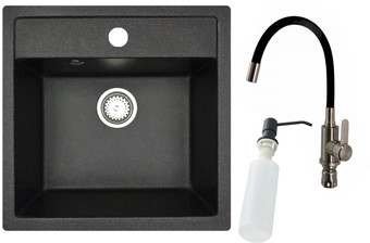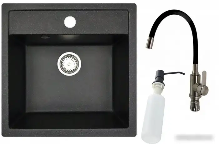 Кухонная мойка БелЭворс Rio + смеситель W74004-2 + дозатор L405F (черный)