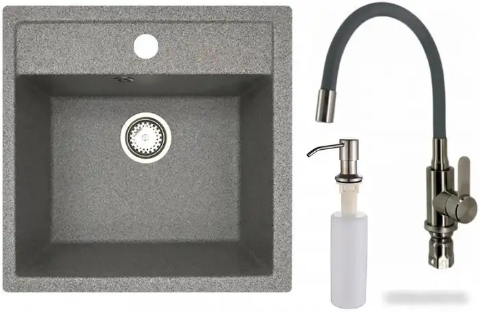 Кухонная мойка БелЭворс Rio + смеситель W74004-9 + дозатор L405-1 (серый/сатин)