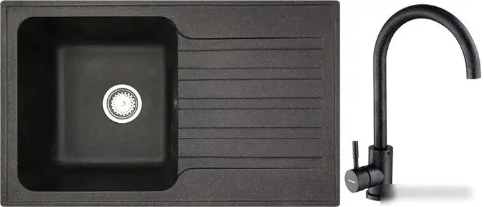 Кухонная мойка БелЭворс Styl L + смеситель W4998-3-22 (черный)