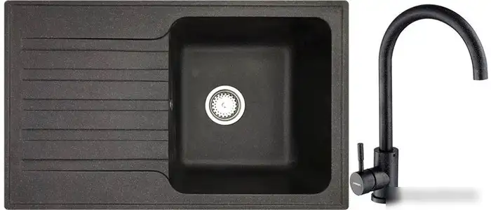 Кухонная мойка БелЭворс Styl R + смеситель W4998-3-22 (черный)