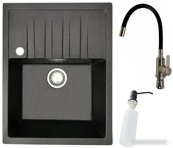 Кухонная мойка БелЭворс Vega L + смеситель W74004-2 + дозатор L405F (черный)