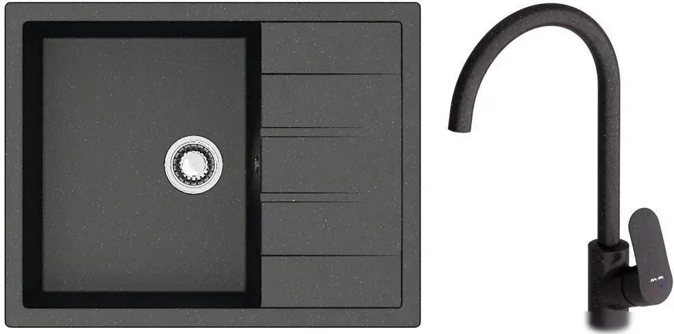 | Комплектация | Мойка кухонная Berge BR-6502 черный; Смеситель AM.PM Like F8007122 |