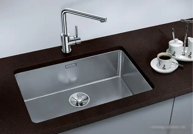 - Центральное расположение чаши — удобно для обработки крупной посуды и овощей.