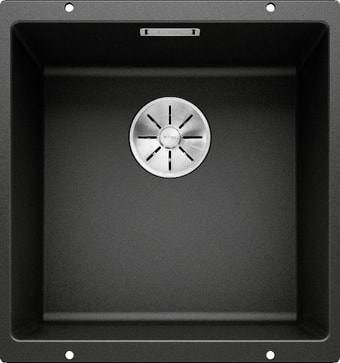 Кухонная мойка Blanco Subline 400-U черного цвета выполнена из искусственного камня, что обеспечивает прочность и долговечность. Она устанавливается врезным способом под столешницу, занимая минимальное место при ширине шкафа 50 см. Мойка имеет одну глубокую чашу глубиной 19 см, расположенную по центру, что удобно для мытья посуды и продуктов. В основной чаше есть перелив, предотвращающий переполнение воды. В комплект входит отводная арматура InFino® с корзинчатым вентилем и набор крепежа, а уплотнитель не входит. Глубина всей конструкции составляет 46 см, а размеры самой чаши — 40х40 см. Такая мойка подходит для повседневных задач на кухне, легко сочетается с различными стилями интерьера. Она не включает смеситель или разделочную доску, что позволяет выбрать их по своему вкусу.