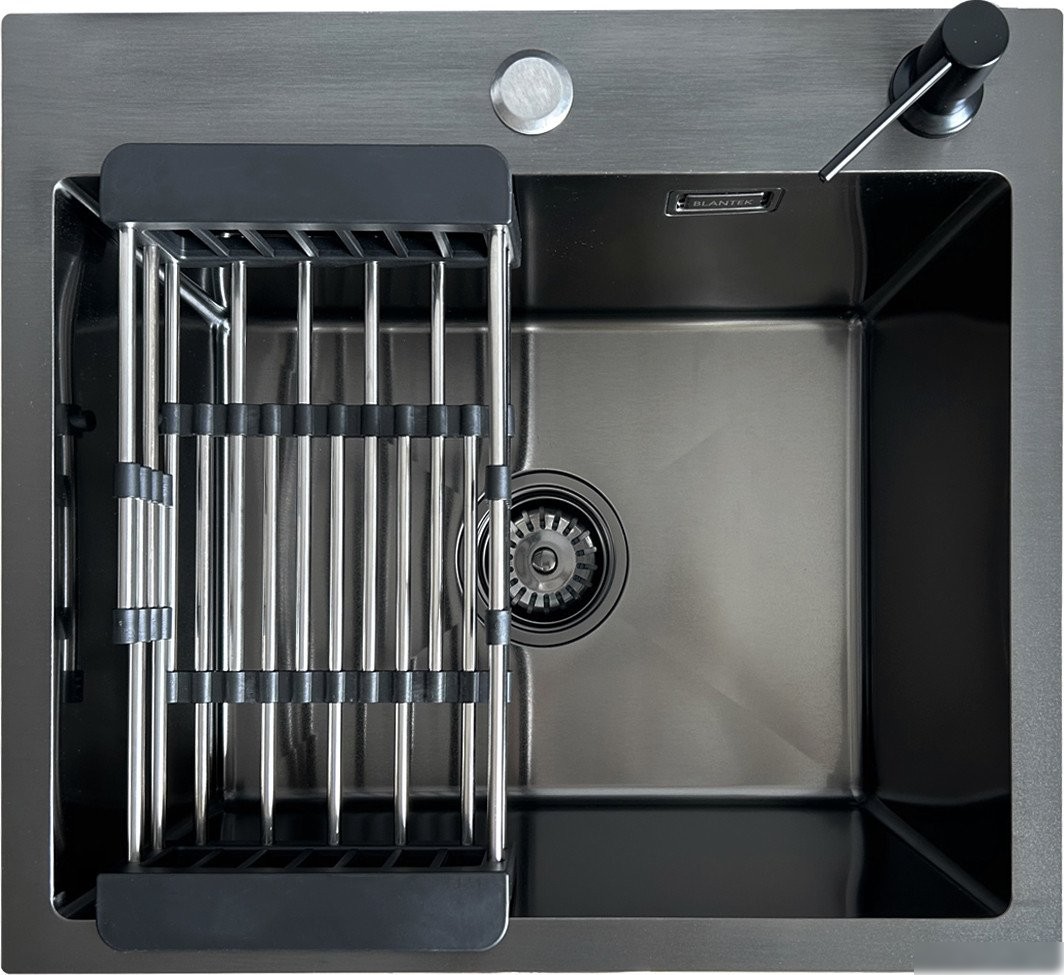 Кухонная мойка Blantek LS-5848B Nano black (набор)