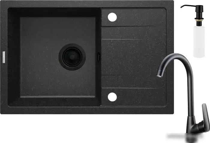 Кухонная мойка Deante Corio ZRCC2113 выполнена из прочного гранита с матовой поверхностью, которая хорошо скрывает царапины и пятна. Мойка устанавливается прямо в столешницу и имеет удобную прямоугольную форму с одной чашей глубиной 16,3 см, что позволяет легко мыть посуду и продукты. Основная чаша расположена так, чтобы было удобно выполнять разные задачи на кухне, а оборачиваемая конструкция обеспечивает дополнительную гибкость. В комплект входит смеситель, клапан-автомат, сифон и дозатор моющего средства, что делает установку проще и удобнее. Также есть крыло для размещения мелочей или аксессуаров. Габариты мойки позволяют разместить ее в стандартной кухонной мебели, а сливное отверстие диаметром 3,5 дюймов обеспечивает быструю слив воды. Эта мойка сочетает в себе функциональность и эстетический вид, делая кухню более удобной.