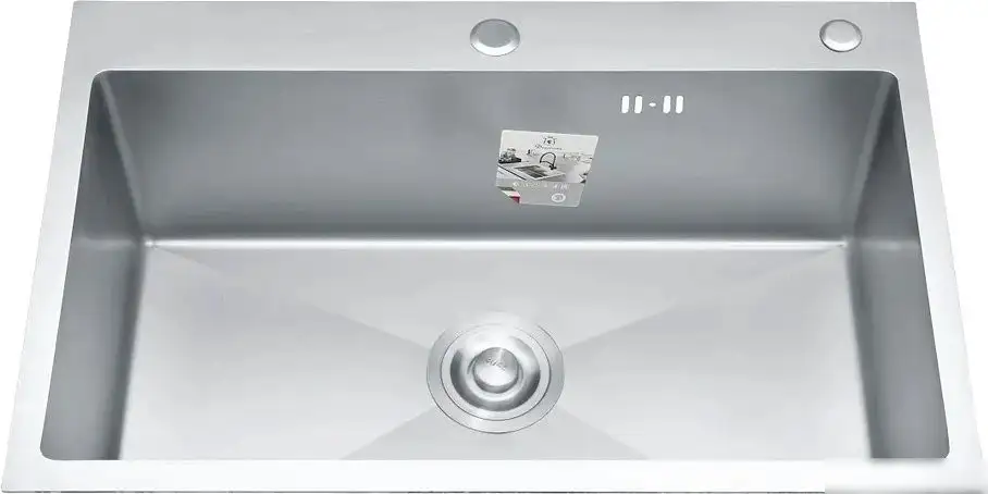 Кухонная мойка Diadonna DS7050 выполнена из нержавеющей стали с матовой поверхностью, что делает её прочной и легко очищаемой. Установка возможна врезкой прямо в столешницу, а форма — прямоугольная с одной чашей, расположенной по центру. Глубина чаши составляет 20 см, что позволяет удобно мыть посуду и продукты. В основной чаше есть перелив, который предотвращает переполнение. Размеры мойки: 70 см по длине и 50 см по ширине, диаметр сливного отверстия — 4,3 дюйма.