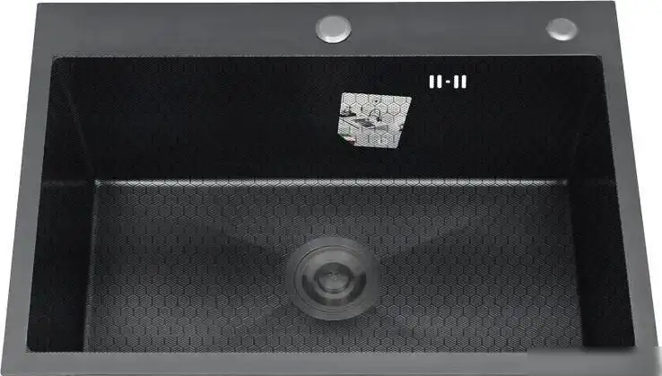 Кухонная мойка Diadonna S7050B-1 устанавливается прямо в столешницу и подходит для врезки. Она имеет одну прямоугольную чашу из нержавеющей стали с текстурой, что делает моющую поверхность более устойчивой к царапинам и легко чистится. Глубина чаши — 20 см, что позволяет удобно мыть посуду и продукты. Мойка оснащена смесителем и автоматическим клапаном, упрощающими работу на кухне. Основная чаша расположена по центру, что обеспечивает баланс при использовании. Отсутствие дополнительного перелива и крыльев делает дизайн более компактным и современным. Благодаря грифору цвета графит, она хорошо сочетается с различными интерьерами кухни. Размеры — 70 см длины и 50 см ширины позволяют легко разместить ее на большинстве кухонных столешниц. В комплект входит смеситель и клапан-автомат, что обеспечивает готовность к использованию сразу после установки.