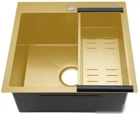 Кухонная мойка Gappo GS5050-3 имеет прямую форму и устанавливается врезной способ на столешницу. В ней предусмотрена одна глубокая чаша из нержавеющей стали толщиной 0.8 мм, которая обеспечивает долговечность и надежность. Глубина чаши составляет 21,5 см, что удобно для мытья посуды и продуктов. Мойка выполнена в элегантном золотом цвете с PVD-покрытием, которое защищает поверхность и придает ей привлекательный внешний вид. Основная чаша расположена по центру, она оснащена переливом для безопасности при использовании. В комплект входит сифон и коландер — удобство при сливе воды и просушке продуктов. Размеры изделия — 50x50 см, диаметр сливного отверстия — 3,5 дюйма. Отделка и качественные материалы делают мойку практичной и долговечной.