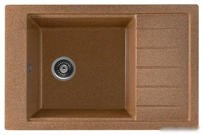 - Материал из искусственного камня — делает мойку стойкой к повреждениям и легко очищаемой.