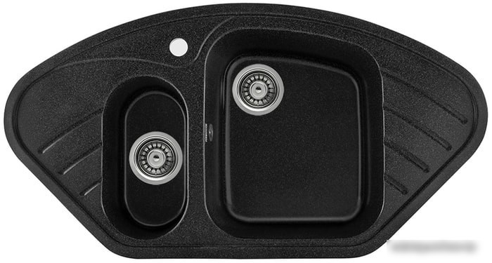 Кухонная мойка Gerhans E02 черного цвета отлично подойдет для вашей кухни. Она устанавливается прямо на столешницу и имеет угловую форму, что позволяет экономить место. В мойке есть одна основная глубокая чаша глубиной 18 см и небольшая дополнительная. Сделана она из прочного искусственного камня, который хорошо выдерживает повседневное использование. Расположение основной чаши справа, а также наличие перелива помогает избежать затопления. Размеры мойки — 95 см в ширину и 50.5 см в глубину, что подходит для стандартных кухонных помещений. Обратите внимание, что в комплекте смеситель и другие аксессуары не идут. Эта мойка — надежное решение для современных кухонь, сочетающее стиль и практичность.