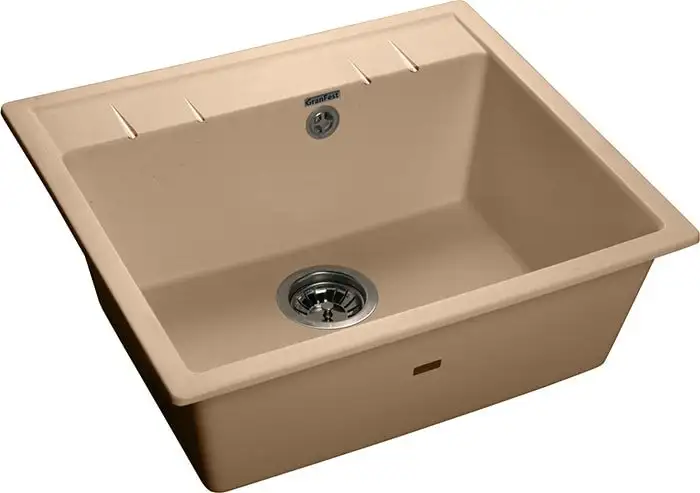 Кухонная мойка GranFest GF-Q-561 (топаз) выполнена из искусственного камня с мраморной крошкой, что делает её прочной и долговечной. Она устанавливается врезкой в столешницу и подходит для шкафов шириной 60 см. Мойка имеет одну прямоугольную чашу глубиной 19 см, расположенную по центру, что облегчает использование и позволяет удобно мыть посуду и продукты. В конструкцию входит перелив для предотвращения переполнения и сливная арматура для удобства соединения с канализацией. Размеры ниши для встраивания — 54х48 см, а сама мойка занимает 50х56 см. Дополнительных отделочных покрытий и элементов, таких как смеситель, разделочная доска или корзина, в комплекте нет, что дает возможность выбрать подходящие аксессуары отдельно. Благодаря гладкой поверхности и простоте ухода, мойка легко очищается от загрязнений. Высокое качество материалов обеспечивает стойкость к царапинам и атакам химикатов, а универсальный бежевый цвет подойдет к любому интерьеру кухни.