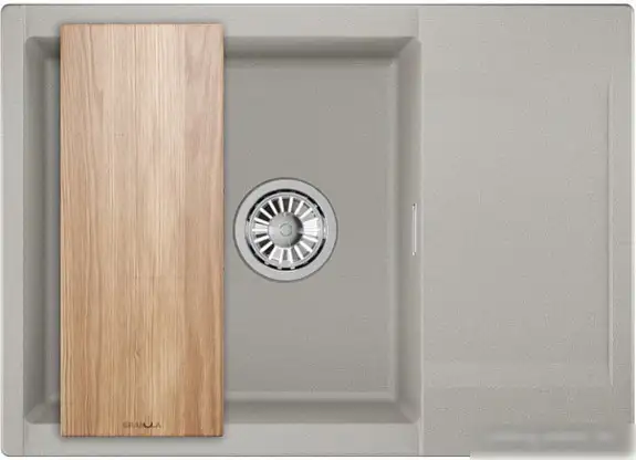 Кухонная мойка Granula ES-7003 выполнена из искусственного камня с матовой поверхностью и толщиной 10 мм. Она имеет прямоугольную форму и одну глубокую чашу глубиной 20 см, которая обеспечивает достаточно места для мытья посуды и продуктов. Мойка устанавливается врезной способом на столешницу шириной 60 см. Основная чаша расположена так, что её можно повернуть по вашему желанию. В комплект входит разделочная доска, что помогает проще и быстрее готовить. Размеры мойки — 70 см в длину и 50 см в ширину, легко впишутся в кухню. Также есть перелив для предотвращения перелива воды из чаши.