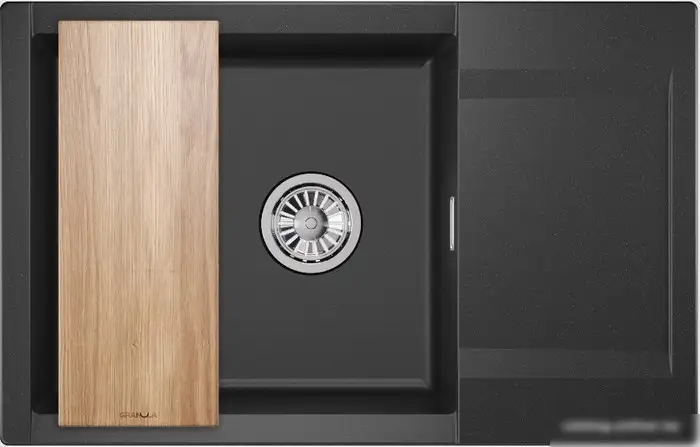 Кухонная мойка Granula ES-7807 черного цвета отлично подойдет для современного интерьера. Она выполнена из искусственного камня на основе кварцевого песка, что делает ее прочной и долговечной. Мойка имеет одну глубокую чашу глубиной 20 см, которая удобно для мытья посуды и продуктов. Благодаря оборачиваемому расположению чаши, установка становится проще, а встроенный перелив помогает исключить перелив воды. В комплект входит разделочная доска, которая позволит сэкономить место и упростит процесс приготовления. Размеры мойки подходят для шкафов шириной 60 см, а ширина ниши — 76 см, что делает её универсальной для большинства кухонных интерьеров.