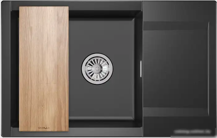 Кухонная мойка Granula ES-7807 (шварц) предназначена для встраивания в столешницу и отлично подходит для кухни с шириной шкафчика 60 см. У неё одна прямоугольная чаша с глубиной 20 см, которая помогает удобно мыть посуду и продукты. Мойка выполнена из искусственного камня на основе кварцевого песка, толщиной 10 мм, что делает её прочной и долговечной. поверхность матовая, а цвет – черный металлик, что отлично сочетается с современным интерьером кухни. В конструкцию входит оборачиваемая основная чаша и перелив, что обеспечивает безопасность и удобство использования. В комплекте есть разделочная доска, которая делает подготовку продуктов более удобной.