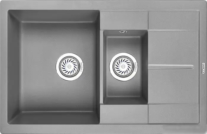 Кухонная мойка Granula GR-7802 выполнена из искусственного камня на основе кварцевого песка, что делает её прочной и долговечной. Модель устанавливается врезкой на столешницу и имеет две чаши, глубиной 19,5 см, что удобно для мытья посуды и продуктов. Размеры мойки подходят для шкафов шириной 60 см, а её ширина составляет 77,5 см. Мойка выполнена в сером цвете, а для удобства в комплектации есть сифон. В конструкции есть крыло, которое помогает сохранить пространство на кухне.