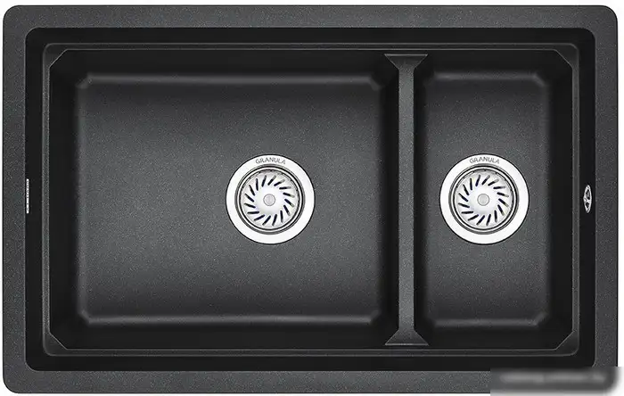 Кухонная мойка Granula KS-7304 выполнена в черном цвете из прочного кварца. Она устанавливается врезным способом и подходит для столешниц шириной около 80 см. Мойка имеет две чаши глубиной 22 см каждая, что удобно для мытья посуды и подготовки продуктов. Основная чаша расположена так, что её можно вращать, а в неё есть встроенный перелив для предотвращения переливания воды. В комплект входит сифон, решетка, дозатор для моющего средства и инструкция. Размеры мойки: длина 45.5 см, ширина 73 см, а диаметр сливного отверстия — 3.6 дюйма. Также есть дополнительная маленькая чаша для различных задач.