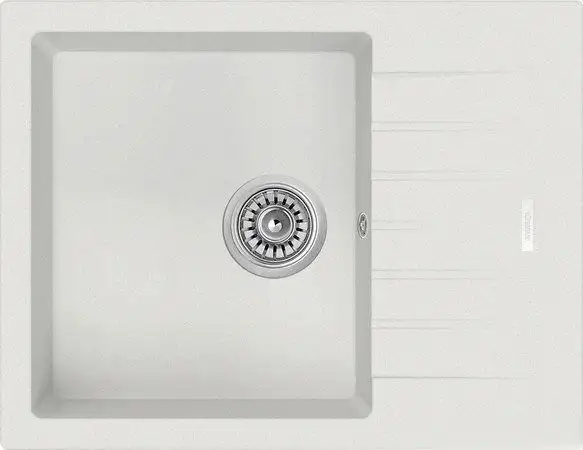 Кухонная мойка Longran Classic CLS650.500 (альпина) имеет форму прямоугольника и устанавливается прямо на столешницу. В ней есть одна глубокая чаша с глубиной 20 см, что удобно для мытья посуды и продуктов. Мойка сделана из искусственного камня с гранитной крошкой, она матовая и прочная. Благодаря расположению основной чаши и наличию перелива, еда и вода не разбрызгиваются за пределы. В комплект входит сифон, но отсутствует смеситель. Размеры мойки — 65 см в длину и 50 см в ширину, с диамантером сливного отверстия 1.5".