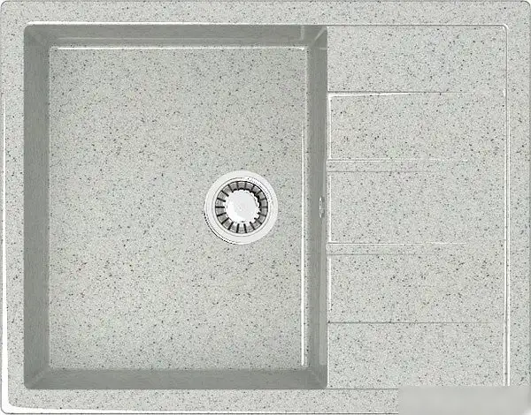 Кухонная мойка MARRBAXX 151/Q10 F151Q010 имеет прямоугольную форму и выполнена из искусственного камня, основанного на мраморной крошке. Она устанавливается врезным способом в столешницу, что делает её монтаж быстрым и простым. В мойке есть одна глубокая чаша глубиной 21.8 см, которая подойдет длямытья посуды и продуктов. Основная чаша располагается на оборачиваемой конструкции, что облегчает её использование. Мойка имеет встроенный перелив для предотвращения переливания воды, а также крыло для дополнительной поверхности. Размеры мойки удобны — длина 64.5 см и ширина 50.5 см, что подходит для шкафов шириной 45 см. Внутри есть отверстие для слива диаметром 3.5 дюймов, а поверхность матовая с приятным светло-серым цветом. Мойка не комплектуется смесителем или другими аксессуарами, что позволяет выбрать подходящую комплектацию по своему вкусу.