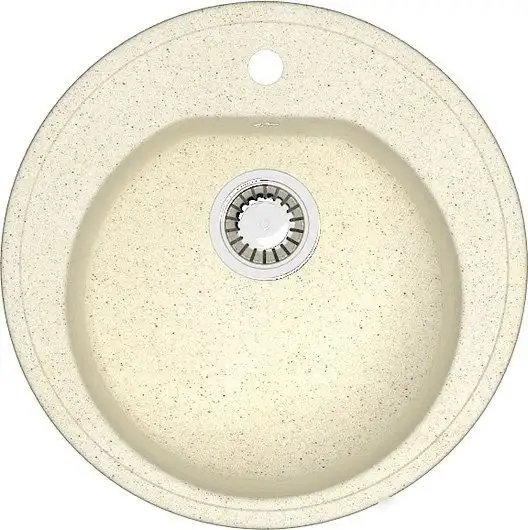 Мойка MARRBAXX 3/Q2 F003Q002 выполнена в бежевом цвете и изготовлена из искусственного камня на основе мраморной крошки. Она устанавливается врезным способом на столешницу, что облегчает монтаж. В конструкции есть одна круглая чаша с глубиной 19,1 см, расположенная по центру, что удобно для мытья посуды и продуктов. Поверхность матовая, что помогает скрывать царапины и делает уборку проще. В основной чаша встроен перелив, предотвращающий затопление. В комплект входит смеситель, что позволяет сразу пользоваться мойкой. Размеры позволяют установить ее в нишу шириной около 49,4 см, а габариты самой мойки — 50,5 см К 50,5 см. Диаметр сливного отверстия составляет 1,5 дюйма, что подходит для стандартных сливных систем. Эта мойка отлично сочетается с современными кухнями и прослужит долго благодаря качественным материалам.