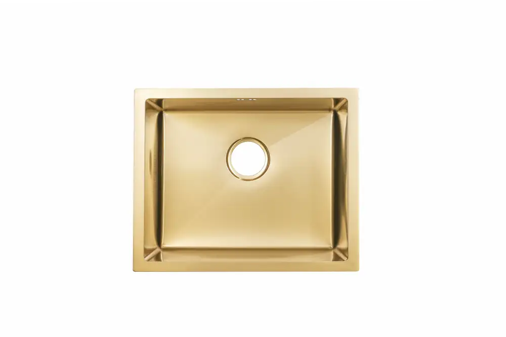 Кухонная мойка ARFEKA ECO AR 550*450 GOLD PVD NANO — это удобное решение для любой кухни. Она устанавливается врезным способом под столешницу и имеет один прямоугольный чашу с глубиной 20 см, где легко мыть посуду и продукты. Выполнена из нержавеющей стали толщиной 1.2 мм и покрыта матовым золотым PVD покрытием, что придает ей красивый внешний вид и защищает от износа. Мойка обладает оборачиваемой основной чашей и имеет систему перелива для безопасности. В комплекте не идёт смеситель или корзина, что позволяет выбрать подходящие аксессуары по своему желанию. Размеры 45х55 см делают её универсальной для различных кухонных пространств.