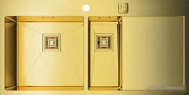 Кухонная мойка Omoikiri Akisame 100-2-LG-L представляет собой врезную модель из нержавеющей стали с покрытием PVD, которая легко устанавливается на столешницу. Она имеет прямоугольную форму и оснащена двумя чашами — основной и меньшей, глубиной 20 и 18 см соответственно, что удобно для различных задач на кухне. Мойка подходит для шкафов шириной 90 см и обеспечивает оптимальное использование пространства. Поверхность матовая и полированная, что делает её устойчивой к царапинам и легко чистится. В каждой чаше есть перелив, предотвращающий переполнение, а с правой стороны находится крыло для рабочей поверхности. Мойка комплектуется автоматическим клапаном для удобства слива воды. Размеры основной чаши — 40x42 см, дополнительной — 18x40 см, что позволяет размещать разные предметы и посуду.