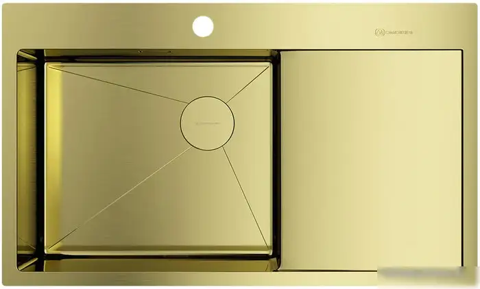 Кухонная мойка Omoikiri Akisame 86 Side LG-L имеет прямоугольную форму и выполнена из нержавеющей стали толщиной 1.2 мм. Мойка устанавливается врезным способом на столешницу с шириной шкафа 60 см. Она оснащена одной глубокая чашей толщиной 20 см, что удобно для мытья больших посуды и продуктов. Светлое золото придает кухне современный и стильный вид. Особенности конструкции включают PVD-покрытие, которое защищает поверхность от царапин и тускнения. В комплект входят донный клапан, сифон, слив, перелив и крепления для монтажа, что облегчает установку. Размер ниши для встраивания составляет 84.4 см по ширине и 49.4 см по глубине. Мойка не комплектуется смесителем и аксессуарами, но обеспечивает устойчивость и длительный срок службы. Расположение основной чаши делает процесс мытья удобным и эргономичным.