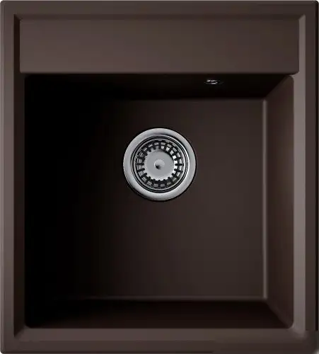 Кухонная мойка Omoikiri Daisen 46 ES — это врезная модель с одной чашей, которая устанавливается прямо на столешницу. Она выполнена из искусственного камня на основе гранитной крошки (Artgranit), что делает её прочной и долговечной. Глубина чаши составляет 19,5 см, что позволяет удобно мыть посуду и продукты. Размеры моечной области — 37 см в длину и 39 см в ширину, а общая длина всей мойки — 51 см. Мойка имеет центрическое расположение основной чаши и встроенный перелив, что предотвращает переливание воды. В комплект входят крепления, донный клапан и сифон, поэтому монтаж легко выполнить самостоятельно. Цвет — коричневый или эспрессо, он хорошо впишется в классическую кухню. Внутри нет отделки, что облегчает уход и чистку. Размер ниши для встраивания — 44 см по ширине и 49 см по глубине, что подходит для большинства кухонных шкафов шириной 45 см.
