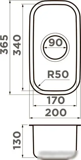 врезная под столешницу, нержавеющая сталь, размеры: 20x36.5 см, глубина чаши: 13 см, в шкаф шириной от 30 см