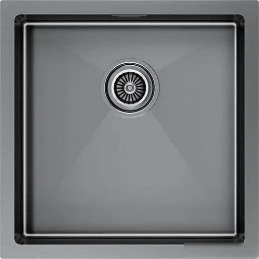 Кухонная мойка Paulmark Gerberg 44 UNI PM254444-GM выполнена из нержавеющей стали толщиной 1,2 мм и имеет черный цвет с PVD покрытием, что обеспечивает прочность и долговечность. Она устанавливается врезной способом, что позволяет seamlessly интегрировать ее в столешницу и сэкономить пространство. Мойка имеет одну чашу с глубиной 20 см, которая расположена по центру для удобства использования. Ее размеры — 44 на 44 см, что подходит для шкафов шириной 45 см. В конструкции есть звукоизоляционное покрытие, уменьшающее шум при использовании. В комплект входит крепеж, сифон и все необходимое для монтажа. Благодаря отделке и современному дизайну, она отлично впишется в любой кухонный интерьер. Мойка подходит для различных способов установки: врезная на столешницу, под столешницу или вровень с поверхностью. Её простая в использовании форма и качественные материалы делают ее надежным выбором для домашней кухни.