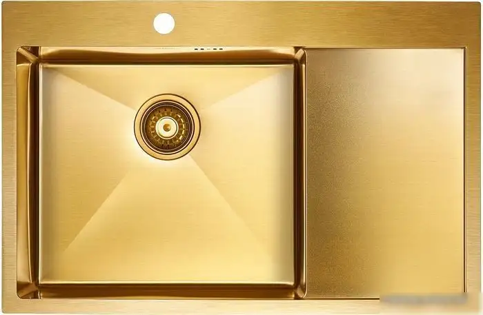 Кухонная мойка Paulmark Atlan PM217851-BGL изготовлена из нержавеющей стали и имеет прямоугольную форму. Она устанавливается врезной способ на столешницу и имеет глубину чаши 20 см, что удобно для мытья посуды и продуктов. Мойка выполнена в красивом брашированном золоте, что придает кухне стильный вид. Размеры модели: ширина 51 см и глубина 78 см. Благодаря звукоизоляционному покрытию, шум при использовании минимален. Модель не включает разделочную доску и корзину, что упрощает уход и чистку.