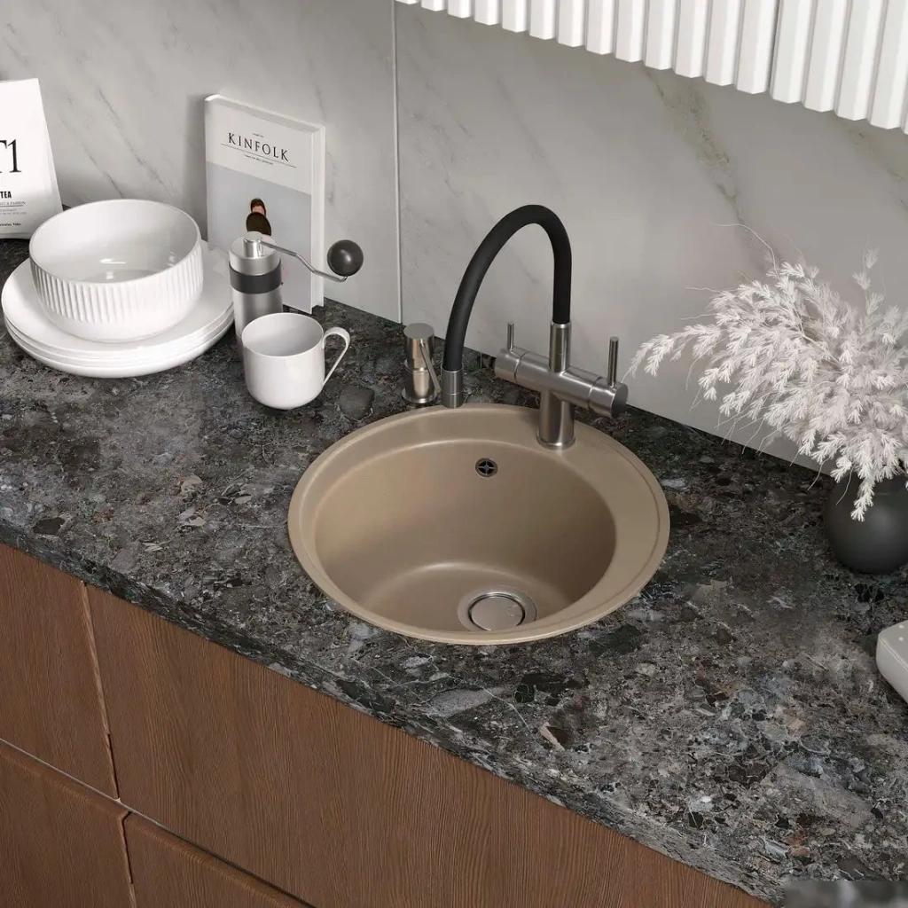 Кухонная мойка Reflexion Arena RF0148BE выполнена из искусственного камня на основе кварцевого песка и рассчитана на врезную установку в столешницу. Она имеет одну чашу с глубиной 18 см, что позволяет удобно мыть посуду и продукты. Мойка подходит для шкафов шириной 45 см и занимает площадь 47,9 см на 47,9 см. Основная чаша расположена справа, что удобно для левшеих и правшеих. В мойке есть перелив, предотвращающий затопление, а диаметр сливного отверстия — 3,5 дюйма. Она поставляется без смесителя и дополнительных аксессуаров, таких как корзина или диспенсер. Благодаря простому дизайну в бежевом цвете она хорошо сочетается с разными кухонными стилями. В комплект входит гарантийный талон и прочная упаковка с ребрами жесткости для защиты при доставке.