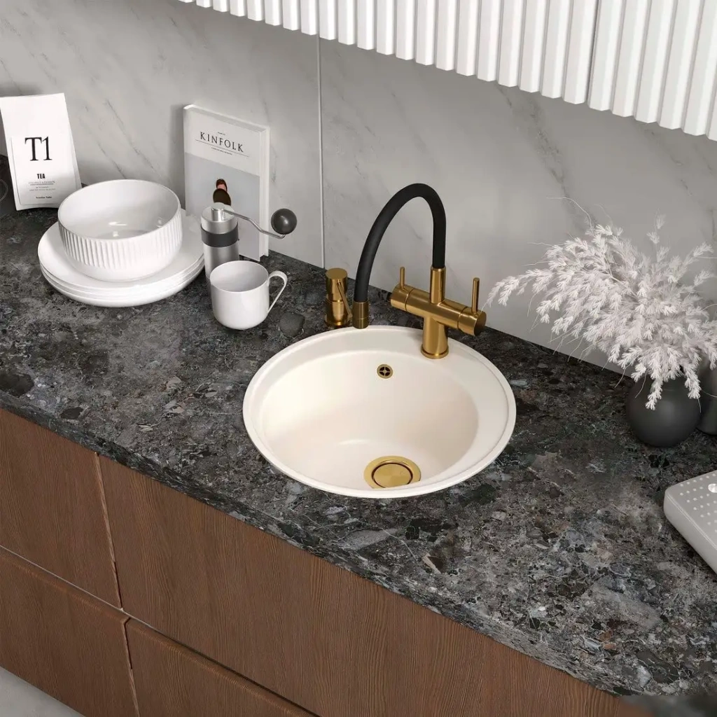 - Высококачественный искусственный камень — обеспечивает долговечность и стойкость к повреждениям.