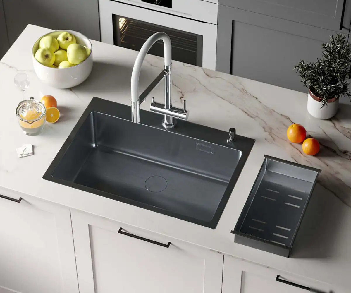 Кухонная мойка Roxen Simple 560220-70B имеет прямоугольную форму и устанавливается врезным способом на столешницу. Она изготовлена из нержавеющей стали толщиной 3 мм, что обеспечивает долговечность и устойчивость к коррозии. Мойка оснащена одной чашей с глубиной 22 см, которая расположена по центру, и имеет сливное отверстие диаметром 3,5 дюйма. Поверхность выполнена в сатиновом цвете графит, а встроенное звукопоглощающее покрытие помогает снизить уровень шума во время работы. В комплект входит сифон с гофрой, корзина, дозатор для моющих средств и комплект креплений. Ее размеры — длина 48 см и ширина 70 см, а длина чаши составляет 38 см. Мойка подходит для тех, кто ищет практичное и надежное решение для кухни.
