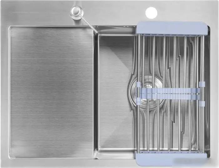 Кухонная мойка Saniteco 6550-R выполнена из нержавеющей стали толщиной 3 мм с satin-отделкой, которая легко устойчива к царапинам и пятнам. Она имеет одну прямоугольную чашу размером 35x40 см и глубиной 50 см, обеспечивая простор для мытья посуды и продуктов. Мойка устанавливается врезным способом на столешницу и имеет оборачиваемую основную чашу, что облегчает монтаж. В комплект входит коландер, который позволяет удобно сливать воду с овощей и фруктов, а также сифона и дозатор для чистоты и удобства. В мойке есть крыло для размещения моющих средств и сливное отверстие диаметром 3,5 дюйма. Благодаря простому дизайну и насыщенному функционалу, эта мойка подходит для любой кухни. Она не включает смеситель, клапан-автомат и разделочную доску, что дает возможность выбрать дополнительные аксессуары по своему вкусу.
