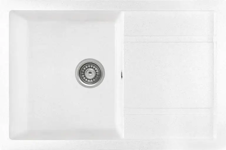 Кухонная мойка Saniteco Fama — это удобное решение для любой кухни. Она выполнена из искусственного камня на основе гранитной крошки, что делает поверхность прочной и долговечной. Мойка имеет прямоугольную форму с одной чашей глубиной 20 см, которая легко выдерживает большие объёмы воды и посуды. Она устанавливается врезным способом на столешницу, благодаря чему смотрится аккуратно и современно. В основной чаше есть перелив, что повышает безопасность использования. Модель подходит для ниш шириной 49 см и глубиной 74 см. В комплект входит сифон, а смеситель не входит в комплект. Размеры мойки — длина 75,5 см и ширина 50,5 см, диаметр сливного отверстия — 3,5 дюйма. Матовое покрытие поверхности легко чистится и не скользит при эксплуатации.