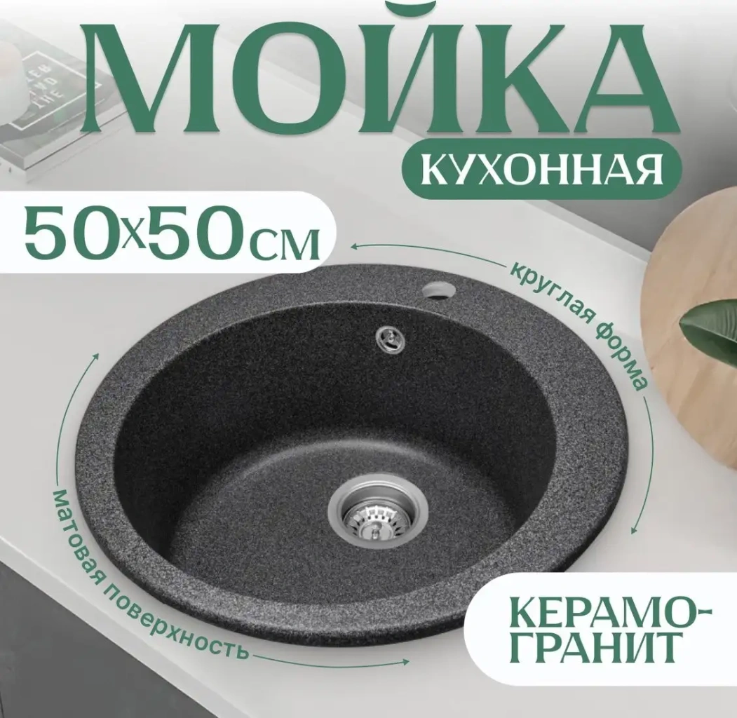 Кухонная мойка Saniteco Linea в графитовом цвете хорошо подойдет для любой кухни. Ее устанавливают врезкой на столешницу, что делает монтаж простым и быстрым. Мойка выполнена из искусственного камня на основе гранитной крошки, что обеспечивает долговечность и устойчивость к царапинам. Она имеет одну глубокую чашу с глубиной 19 см, которая удобно помещает воду и посуду. Поверхность матовая, легко очищается и не оставляет отпечатков пальцев. Основная чаша расположена по центру, а в ней есть перелив для предотвращения переливания воды. В комплект входит смеситель, что экономит время и упрощает установку. Размеры мойки — 50х50 см, диаметр сливного отверстия — 3,5 дюйма, что подходит для стандартных сливных систем.