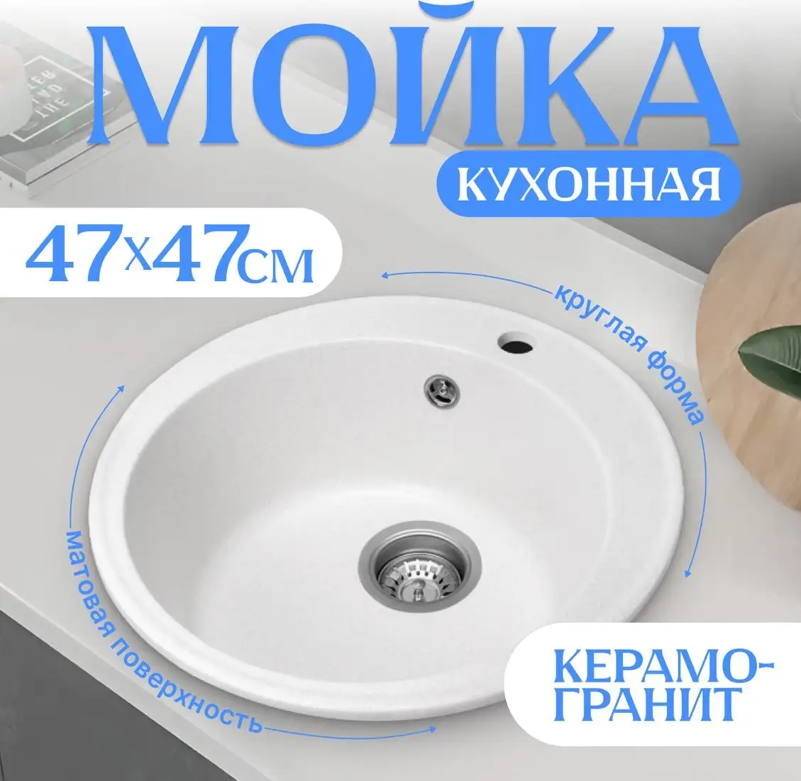 Кухонная мойка Saniteco Nova выполнена из искусственного камня на основе гранитной крошки, что обеспечивает ей прочность и долговечность. Она устанавливается врезным способом на столешницу, а ее форма может быть круглой или овальной, в зависимости от вашей предпочтений. Мойка имеет одну чашу с глубиной 19 см, которая расположена по центру, что удобно для мытья посуды и продуктов. В комплект входит смеситель, а сливное отверстие имеет диаметр 3.5 дюйма, что облегчает слив воды и чистку. Размеры мойки 47х47 см идеально подходят для стандартных кухонных ниш, а матовая поверхность делает ее приятной на ощупь и устойчива к пятнам.