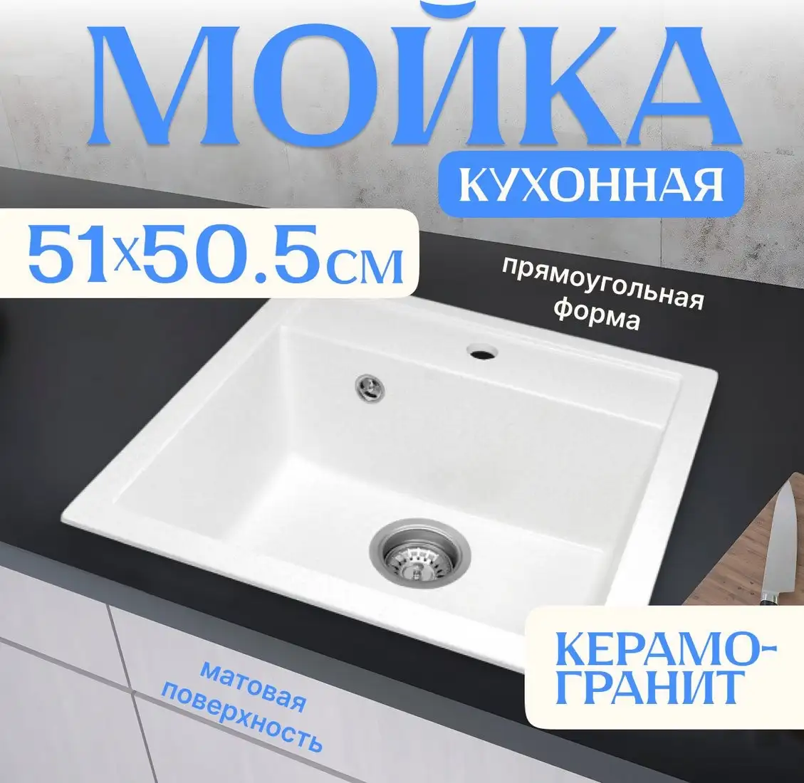 врезная на столешницу, искусственный камень, фактура: матовая, размеры: 50.5x51 см, глубина чаши: 20 см