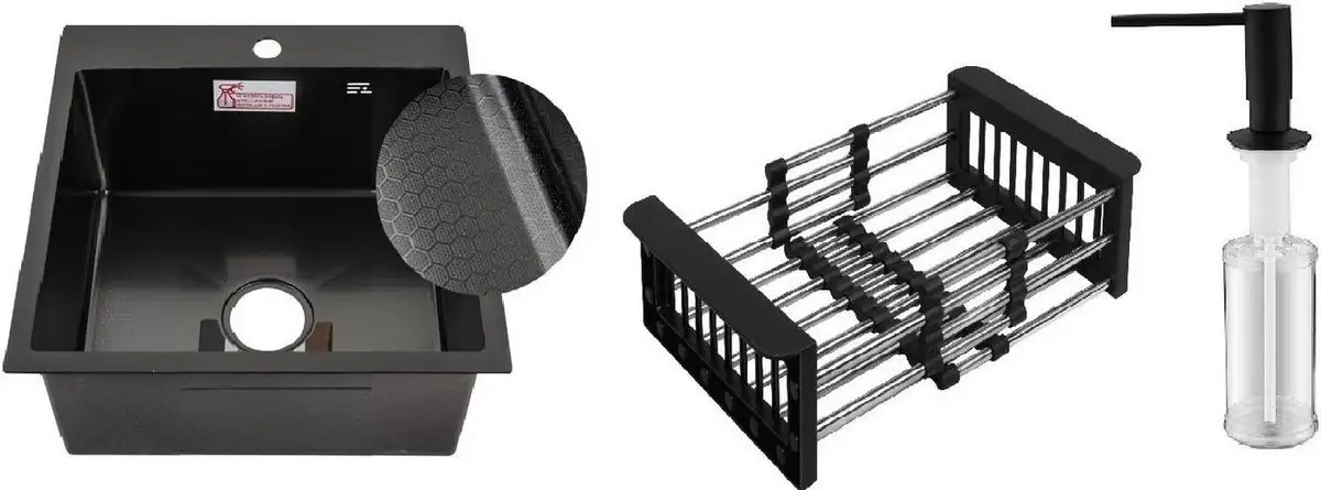 Кухонная мойка Schtoff Best Decor Black 4550 + коландер KR-1 BLACK + дозатор SD-1 BLACK, комплект