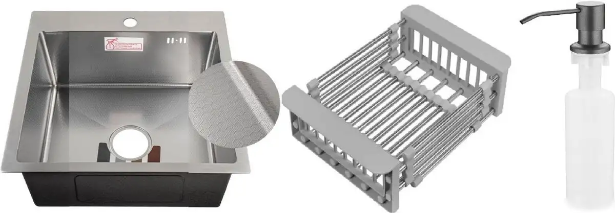 Кухонная мойка Schtoff Best Decor Silver 5050 + коландер KR-1 Grey + дозатор SD-1 Grey