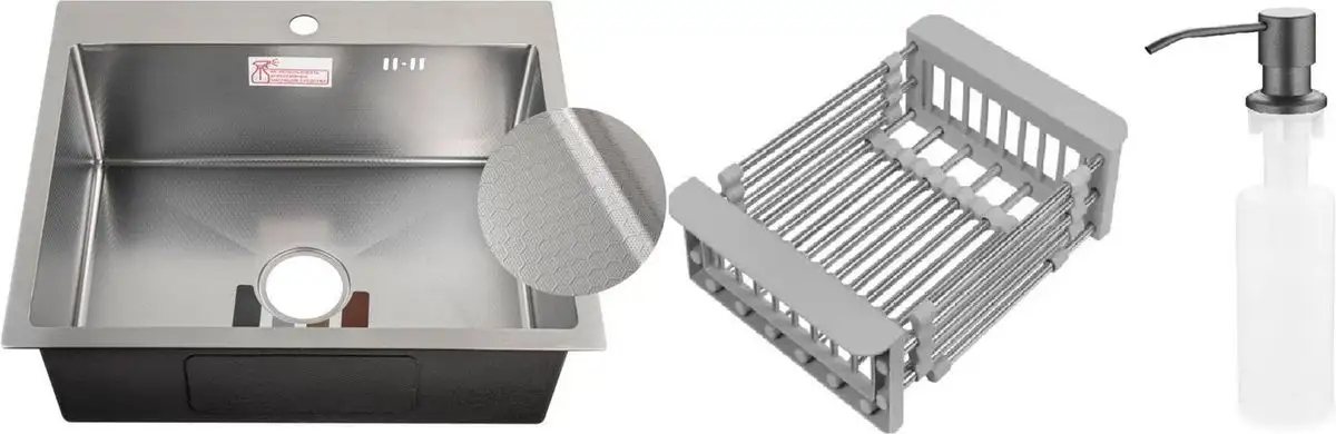 Кухонная мойка Schtoff Best Decor Silver 5550 + коландер KR-1 GREY + дозатор SD-1 GREY