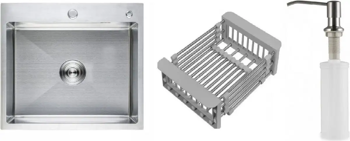 Кухонная мойка Schtoff Best Premium Silver 5550 + коландер KR-1 GREY + дозатор SD-1 SILVER